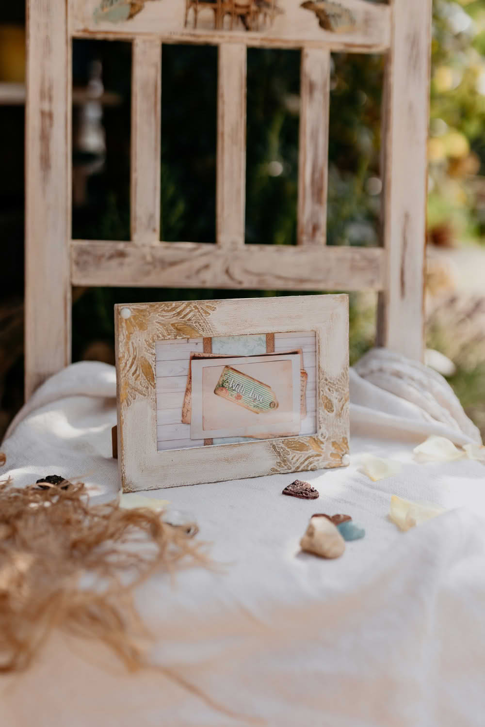 Fehér mandalás képkeret struktúrpasztával